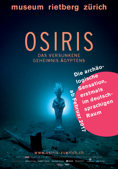 Osiris, Egypt’s Sunken Mysteries (German title: „Osiris - Das versunkene Geheimnis Ägyptens“) opens 10 February 2017 at Museum Rietberg in Zurich. The exhibition features some 300 objects, many of them on display for the first time outside Egypt.