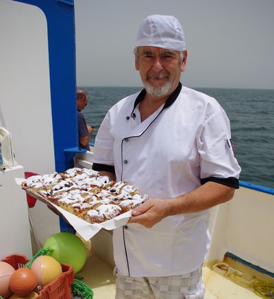Heureusement nous avons à bord un chef de cuisine. Et George adore cuisiner autant que nous, nous adorons manger sa cuisine. Sa spécialité: la pâtisserie!